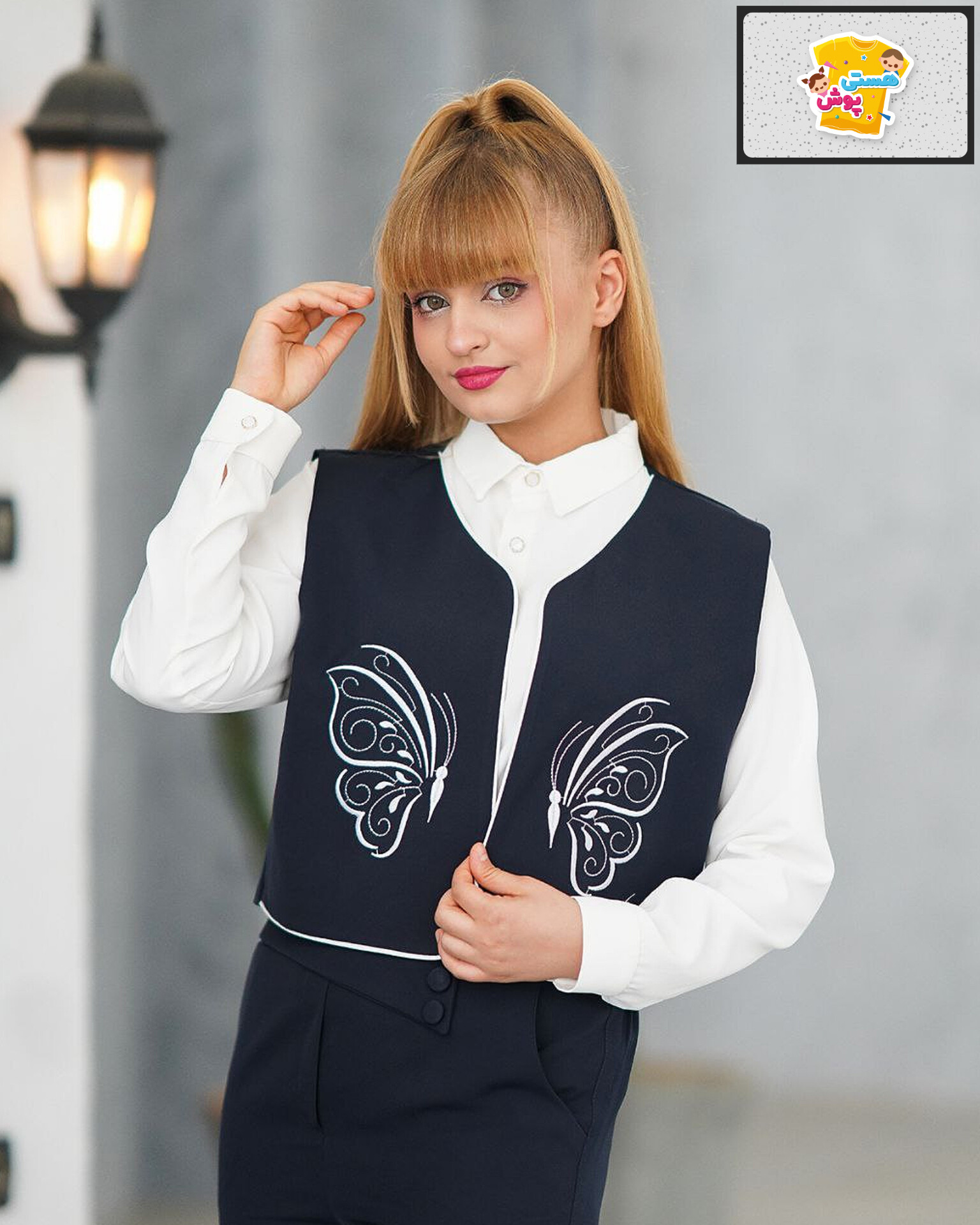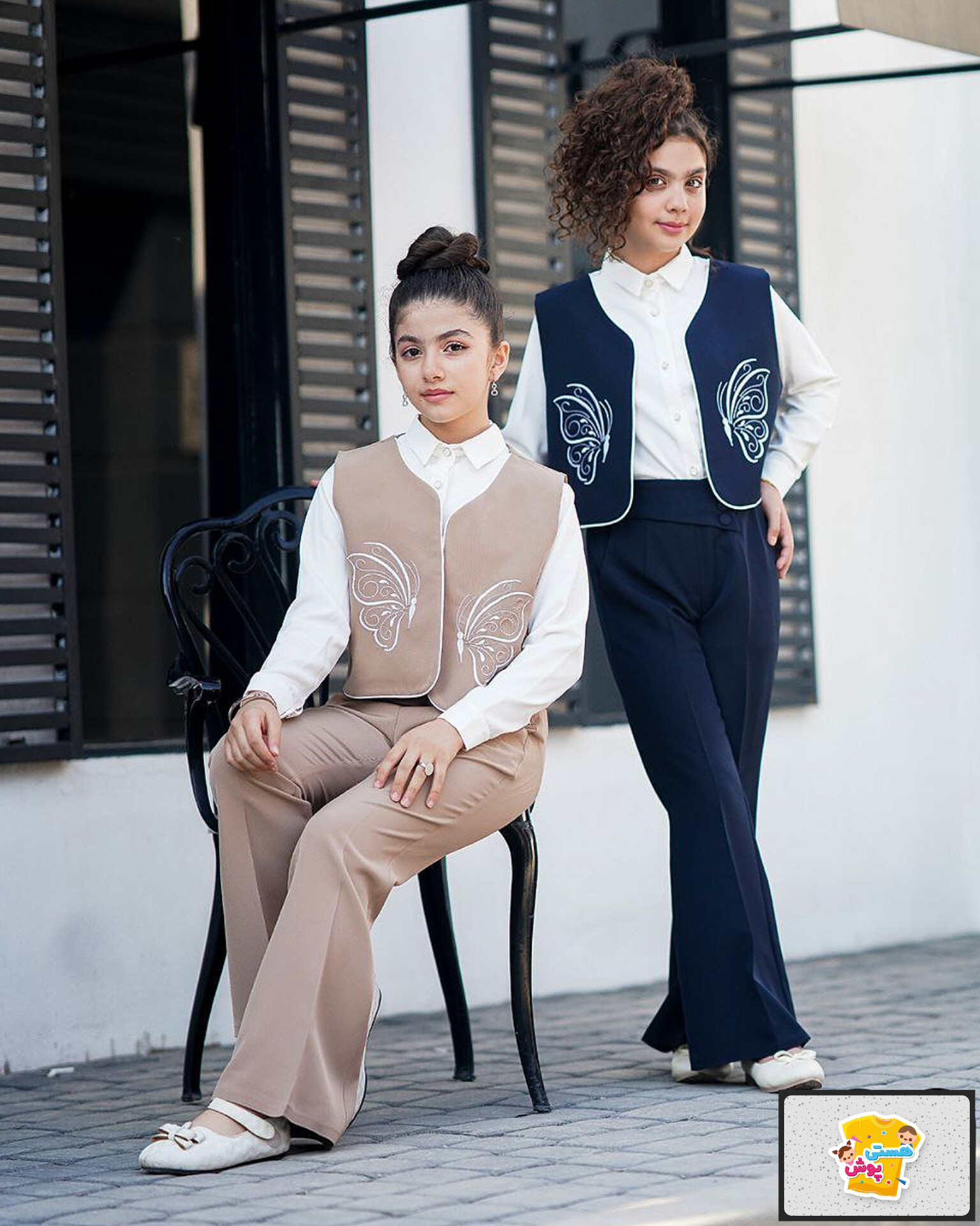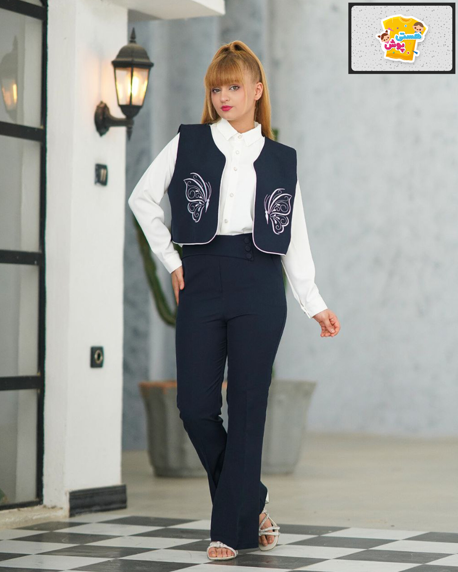 ست سه تیکه بچگانه دخترانه مناسب 6 الی 15 سال می باشد ست سه تیکه کت ، شلوار ، شومیز جنس پارچه شلوار و کت : مازراتی نخ تویست بدون پرز دهی و جنس پارچه شومیز : جسیکا درجه یک با کیفیت عالی این ست سه تیکه بچگانه دخترانه مناسب 8 الی 16 سال می باشد
